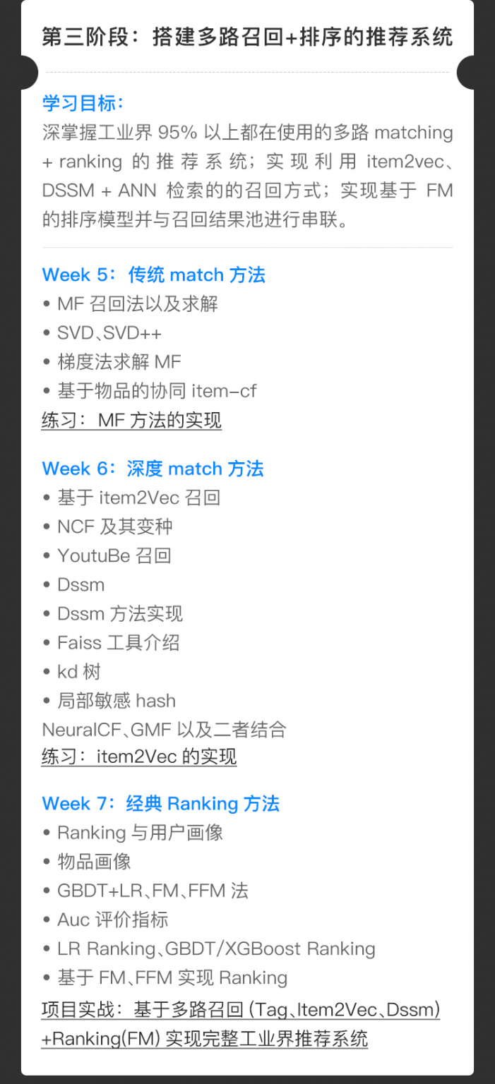本课程《 推荐系统算法工程师培养计划 》来自贪心学院,原价21999,本课程有真实的项目实战,在项目中可以真实的学习到推荐系统算法,15周高清课程带你一起一步步的学习系统算法。