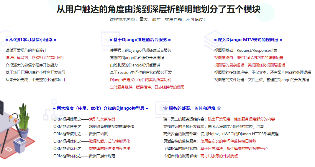 BAT大牛亲授,从零到一的完整项目开发实战过程,项目开发聚焦重要知识点,先原理后实战!项目代码注重质量,书写规范。更有稀缺服务监控,项目部署,服务容灾高可用内容,是一次难得的Django+小程序全栈项目体验。