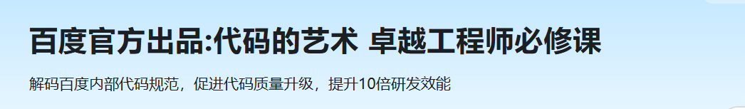 代码的艺术 卓越工程师必修课视频教程。解码百度内部代码规范,促进代码质量升级,提升10倍研发效能。本课程内容浓缩章淼博士20多年以来对软件工程的学习体会和项目实践和在百度所做的软件工程能力培训经验。课程从工程思维、代码、文档、项目管理方面,讲解了如何掌握正确的软件研发工程意识及提升代码能力,为职业发展打下良好的基础。