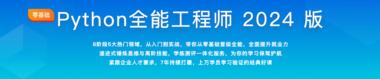 Python全能工程师2024版视频教程。8阶段5大热门领域,从入门到实战,带你从零基础晋级全能,全面提升就业力 递进式锤炼思维与高阶技能,学练测评一体化服务,为你的学习保驾护航