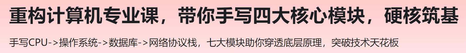 重构计算机专业课,带你手写四大核心模块,硬核筑基。底层能力缺失,意味着技术天花板已触顶!面对性能调优、核心崩溃等硬核挑战,缺乏系统性认知的开发者将寸步难行。扎实掌握计算机底层原理,是晋升高级开发与架构师的关键门槛。本课程采用“造轮子式”全流程实践,从晶体管基础出发,逐步带你用Verilog构建CPU,开发Wind_OS操作系统,基于Linux实现Web服务器,自研关系数据库,并在Wind_OS上实现TCP/IP协议栈。七大模块贯通硬件、系统与应用层,助你夯实底层实力,轻松突破技术瓶颈,迈向技术高峰。