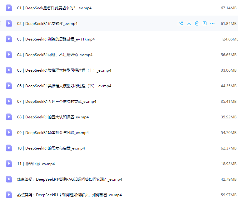 当前位置: 首页AI正文 极客DeepSeek-R1前沿入门课 网盘截图: 声明:本站所有文章,如无特殊说明或标注,均为本站原创发布。任何个人或组织,在未征得本站同意时,禁止复制、盗用、采集、发布本站内容到任何网站、书籍等各类媒体平台。如若本站内容侵犯了原著者的合法权益,可联系我们进行处理。 游客永久会员 打赏 收藏 海报 链接