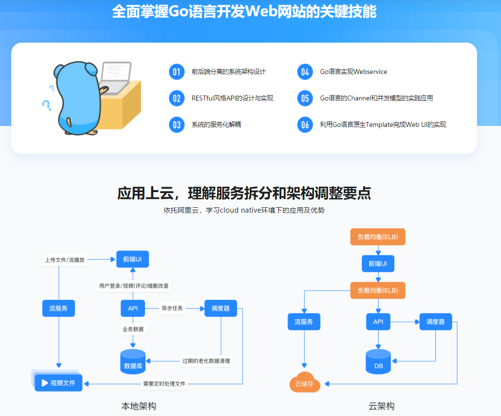 本课程使用Go实战一个流媒体视频网站,从后端Server到前端UI,全面学习Go的要害开发技术和架构风格。凭借SOA服务化解耦的规划理念讲解,帮大家理解真实web服务背后的内容。最后通过架构调整实现Cloud native(云原生)部署。