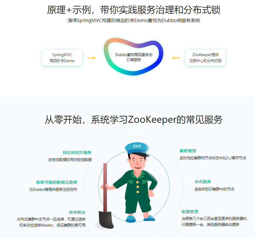 ZooKeeper是一种分布式和谐服务,它用简略的架构和API,处理了分布式环境中和谐和处理服务的难题。本课程带你系统学习ZooKeeper,并结合Dubbo,实践服务管理和分布式锁,带你入门ZooKeeper+Dubbo的服务管理。