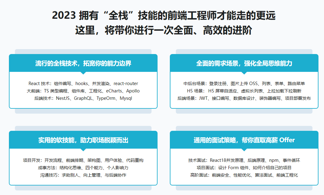 黑石老师,大厂技术专家,深耕前后端十多年。发现很多的前端同学都面临如下的职业困扰:没有能拿的出手的面试项目;不懂后端技术,无法与后端同学高效交流;能完成需求,但不知道什么是最佳实践;每天辛苦写代码,只有苦劳,没有功劳。在本课程中,会带领大家应用当下流行的全栈技术 ,开发2W+代码的高质量在线教育平台,更将实用职场技巧、面试策略倾囊相授,助你在2023冲破瓶颈,更进一步。