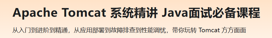 Tomcat是互联网大厂必备技术栈,更是面试必考技能点。但是,很多开发者往往只熟悉于自身业务开发,当遇到Tomcat系统配置、故障排查、性能瓶颈等问题时,无法高效解决生产中突发问题,错失晋级跳槽时机。课程带你深入理解Tomcat 核心组件、线程模型、高可用集群、监控、性能调优等;更会结合源码分析Tomcat命令对系统层调用,深挖原理,构建专业的Tomcat技能体系,轻松应对面试官各种刁难,倍增生产实践经验。