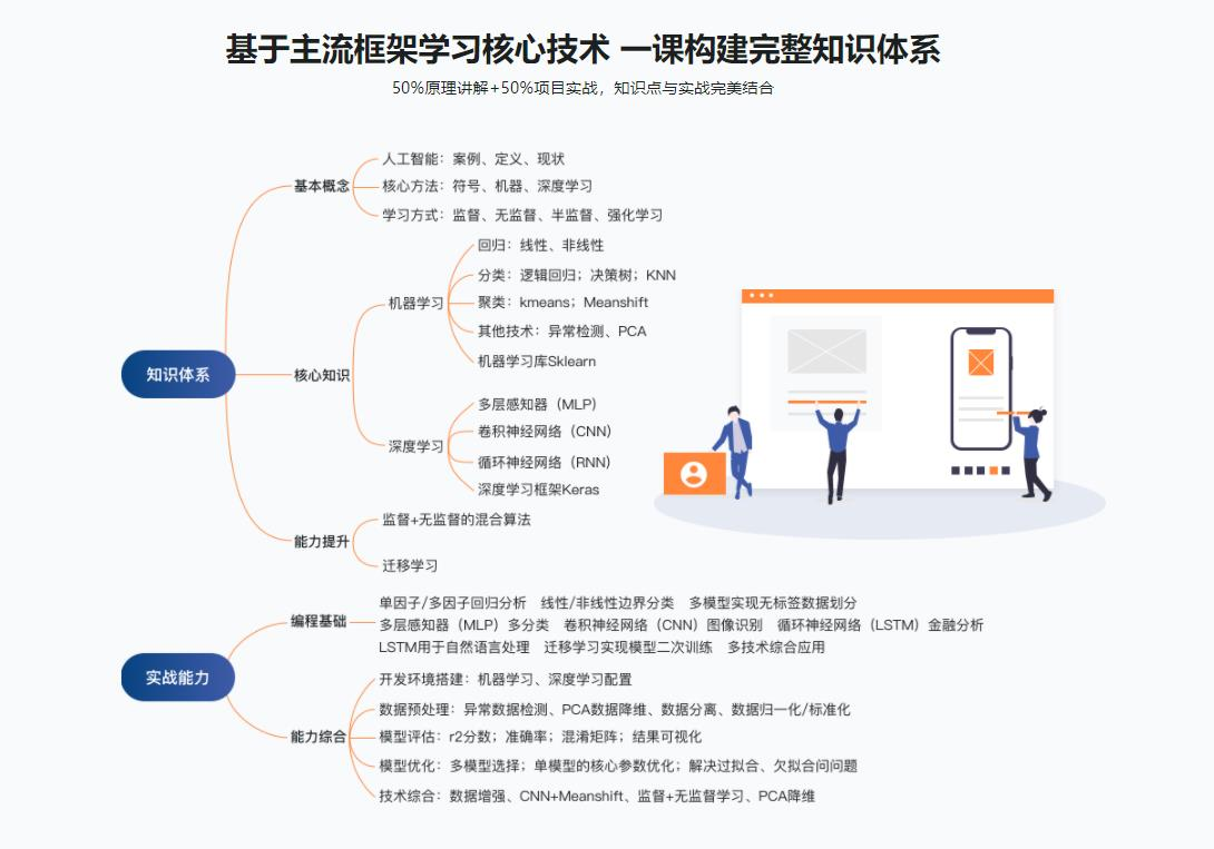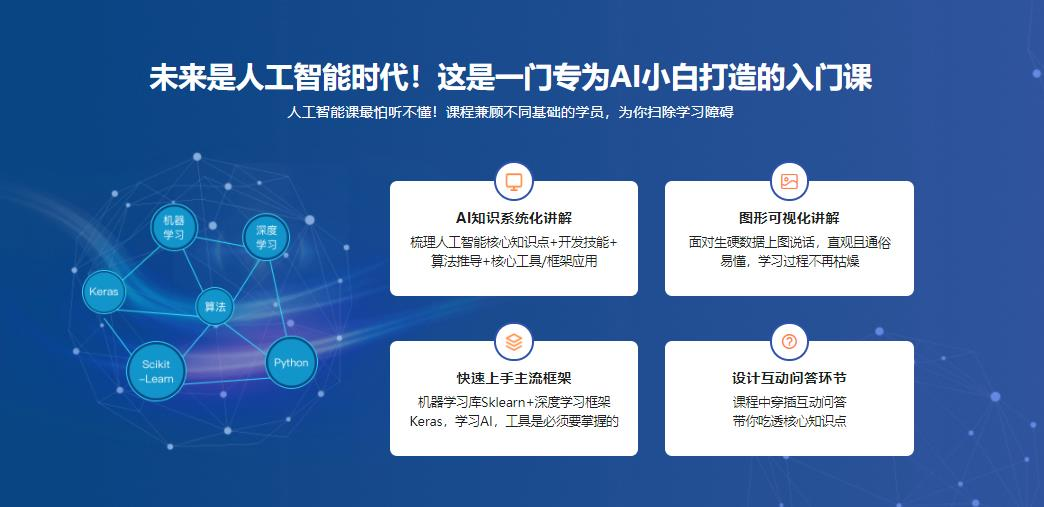 讲师赵辛为福布斯中国U30科技上榜者,孔雀人才,全奖海归博士,课程囊括机器学习与深度学习,监督与无监督学习,独有综合多项技术的混合算法,采用sklearn与keras框架(底层调用TensorFlow)为你学习AI打下扎实基础。