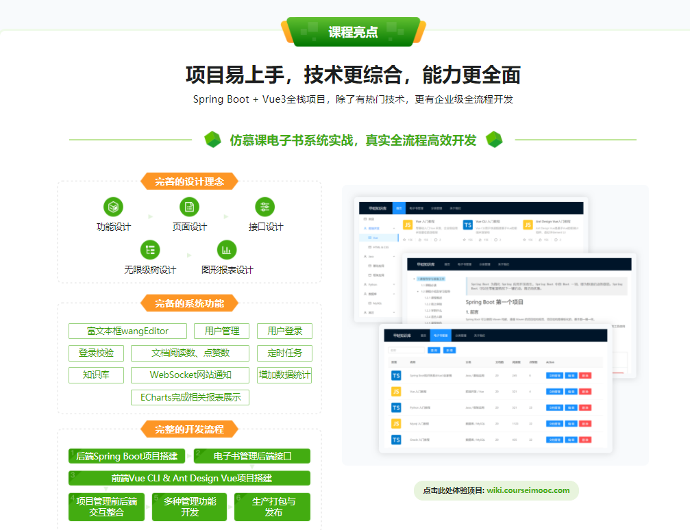 通过一个界面简约、功能完整的知识库项目,带你快速掌握Spring Boot核心知识+ Vue全家桶全栈技能。在此过程中,打造一套通用的组件工具(可应用于其他项目),掌握前后端分离开发模式,搭建一个专属自己的、内容可灵活配置的知识库系统。