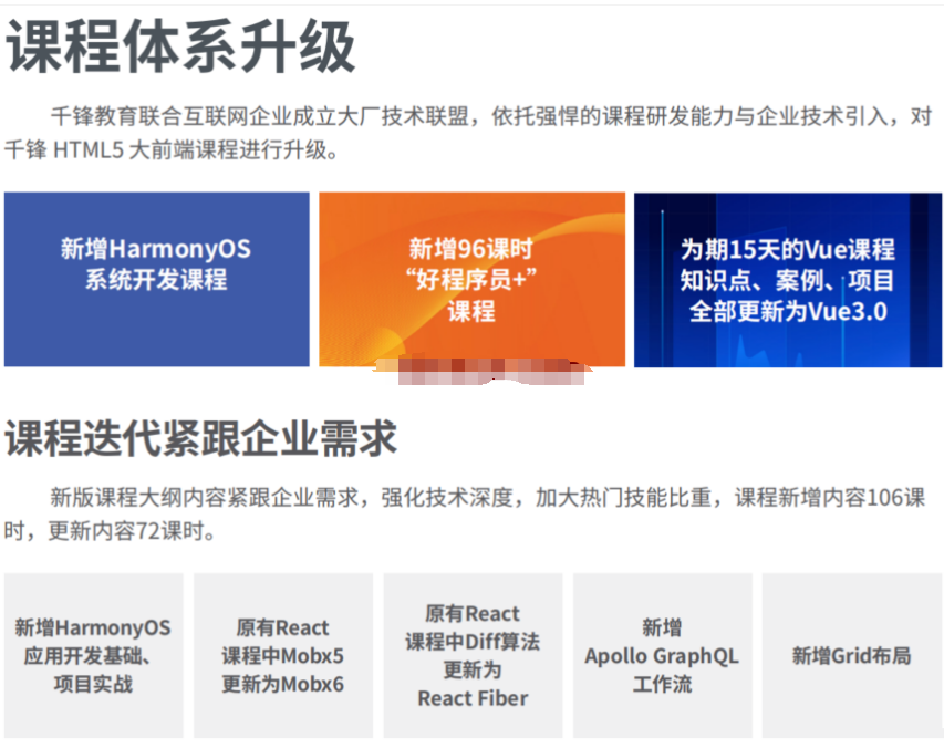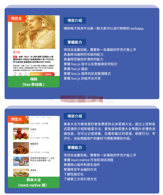 - 课程内容全维度更新为Vue3.0 融合企业技术,注重React人才培养!!!