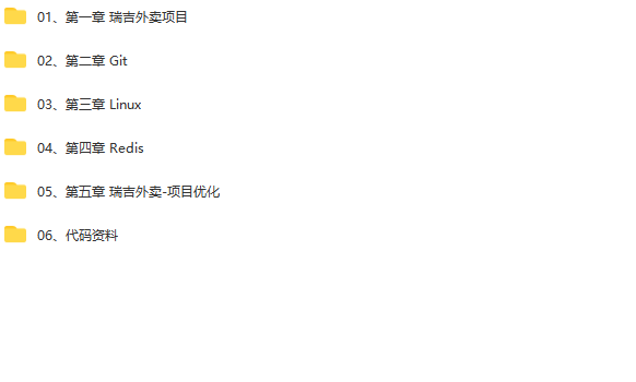 黑马《瑞吉外卖》项目包含 14 天课程,共 190 节,涉及外卖业务开发、Git、Linux、Redis与项目优化 5 大篇章,涵盖整个项目的开发过程和优化过程。