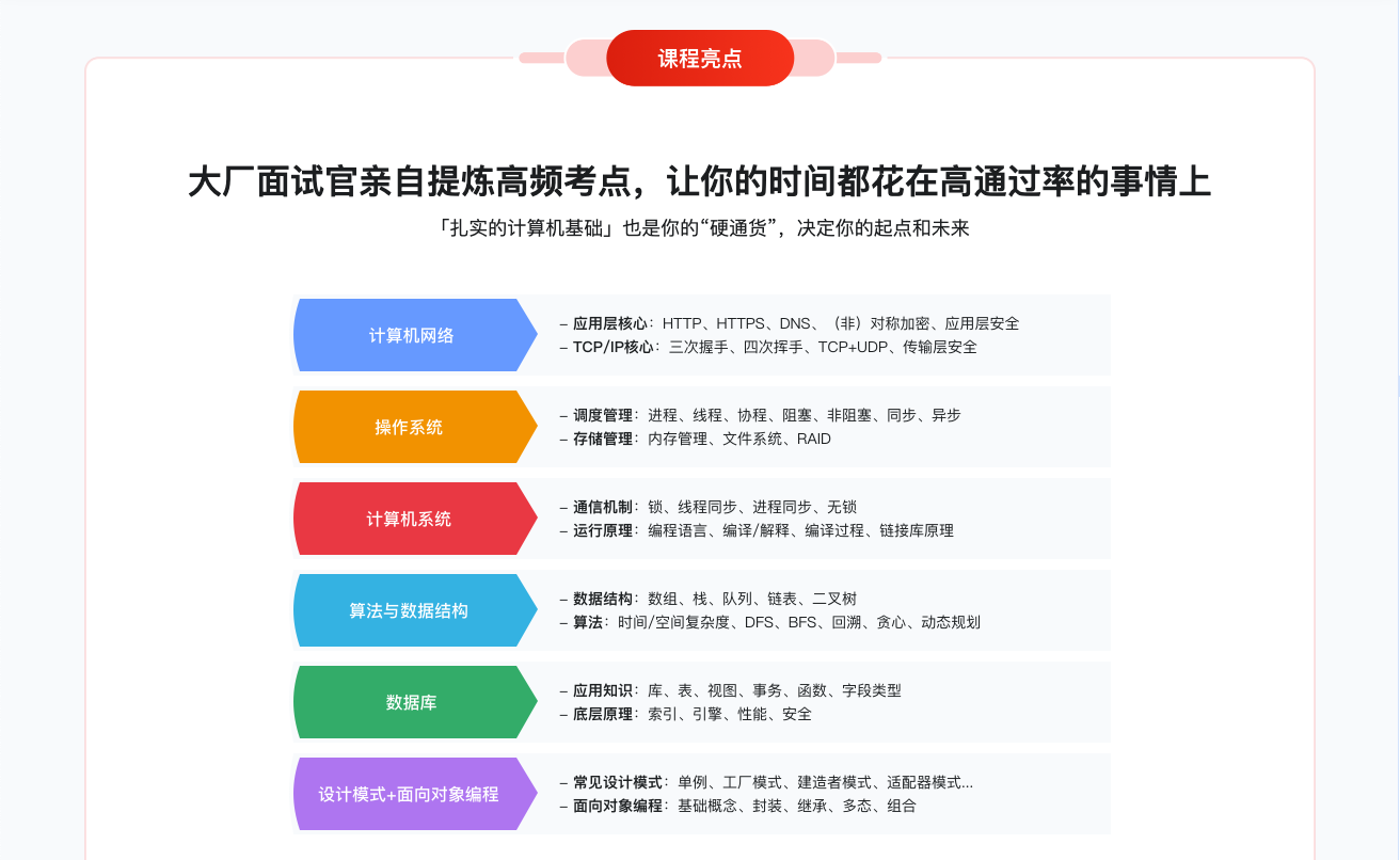本课将提炼高频考点,扎实的计算机基础也是你的“硬通货”,决定你的起点和未来