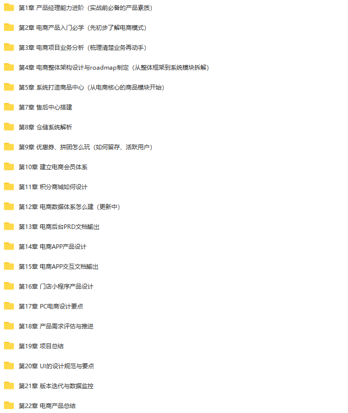 • ├──第2章 电商产品入门必学(先初步了解电商模式)