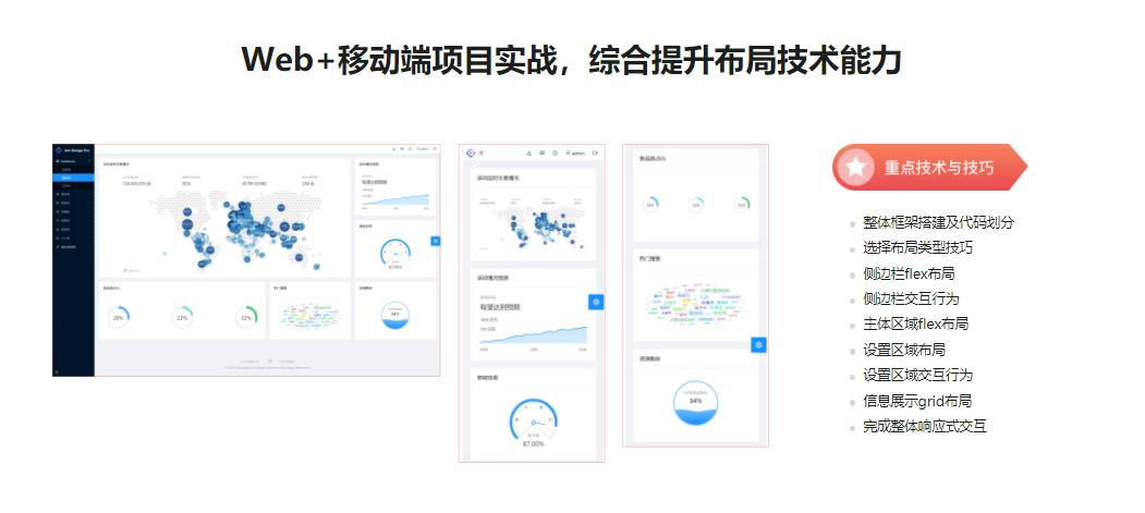 移动端布局趋势明显,各种现代web开发中都离不开移动端布局,相关语法和细节非常重要,是公司必会技能之一。