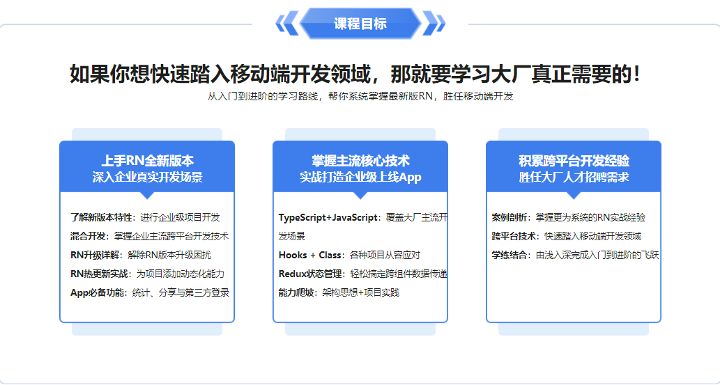 • 第16章 React Native混合开发【高能预警,解锁最流行的开发方式,难度指数5星】10 节 | 97分钟