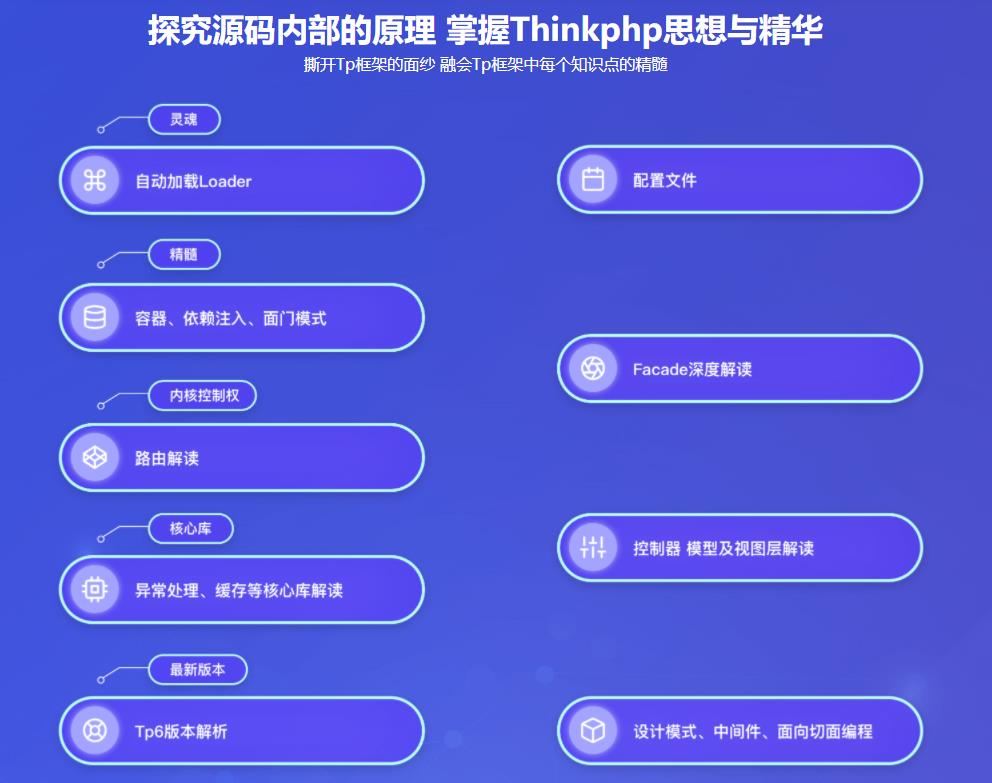 为解决大家对于TP框架底层源码的学习问题。singwa老师在本门课程为大家一步步分析Thinkphp的底层源码,在分析的过程中,逐步提升技术水平。轻松应对不同的TP版本和不同的框架,掌握课程所授内容,可基本达到百度T5的水平。