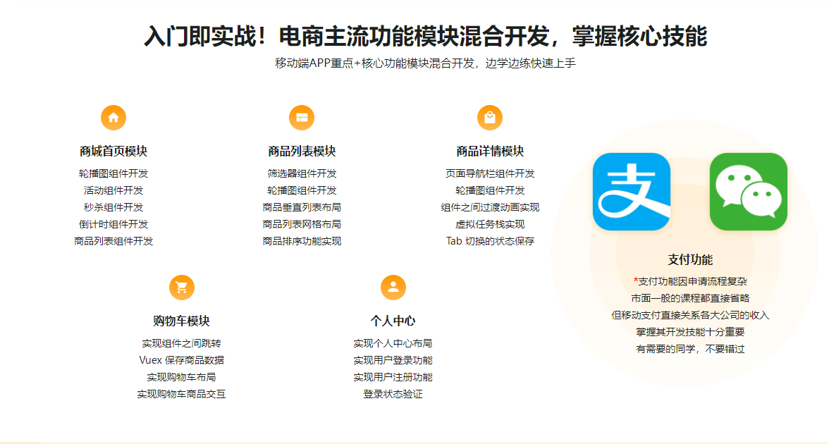 本课程融合Vue、Android等流行的前端和移动端技术,混合开发经典电商APP——京东。课程将复杂功能与知识点完美融合,带你真实感受到明星级产品开发的全过程。除此之外,还有一流用户体验和优秀交互设计等你一探究竟,拓宽开发眼界。