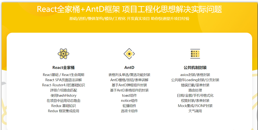 本套课程来自某课网官网售价199元无密完结版,本课程由Web精英讲师”河畔一角”为前端开发者倾力打造,是一门学习React全家桶+AntD实战开发的视频教程,本视频教程围绕共享单车后台管理系统实战项目开发,带你深入分析项目开发痛点和解决方案,让你快速提升实战项目经验。本视频教程资源目录在底部。