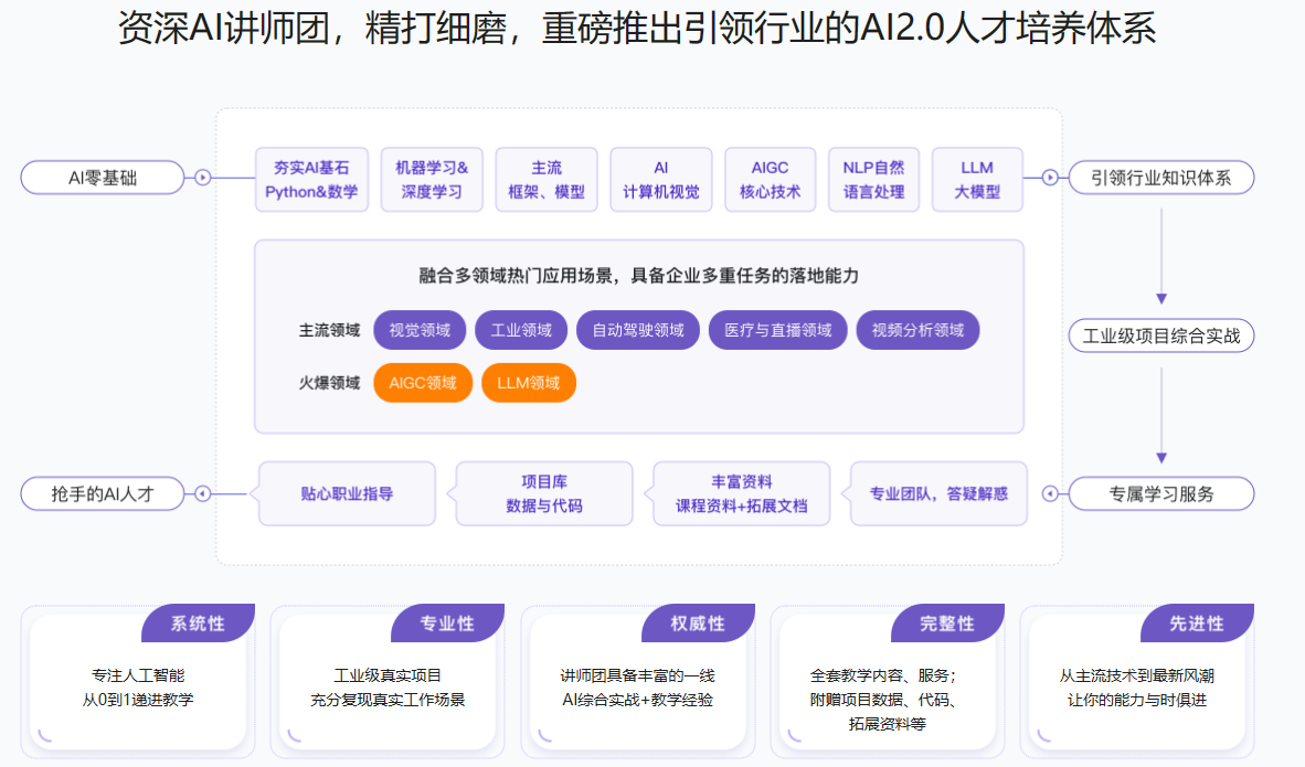 引领行业的知识体系+工业级多领域综合项目+资深专业讲师团+全方位贴心服务