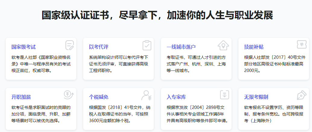 软考是人社部《国家职业资格名 录》中唯一与程序员有关的考试 ,报考不受限制,可帮你积分落户、评职称、个税抵扣等。本课程以拿证为导向,紧扣考标和规则,全面系统的提炼考试高频考点、重难点,精准剖析历届真题与强化训练,帮助大家以短时间和少精力去备考。王老师研磨有效的备考课程体系和方案,从报名、备考、考前冲刺全程解答服务,遵循不失分少丢分多得分原则,助力学员提升通过率,早日拿下证书。