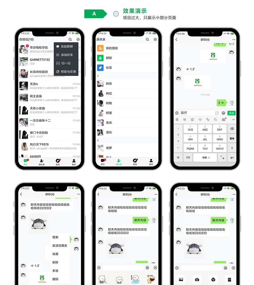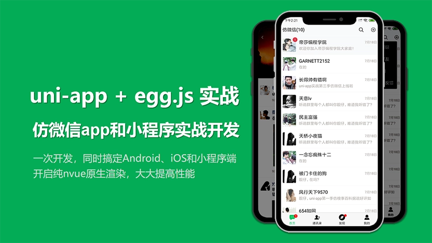本季度为uni-app + egg.js 实战仿微信app和小程序全栈开发,开启纯nvue原生渲染,大大提高性能。一次开发,同时搞定Android、iOS和小程序端等。