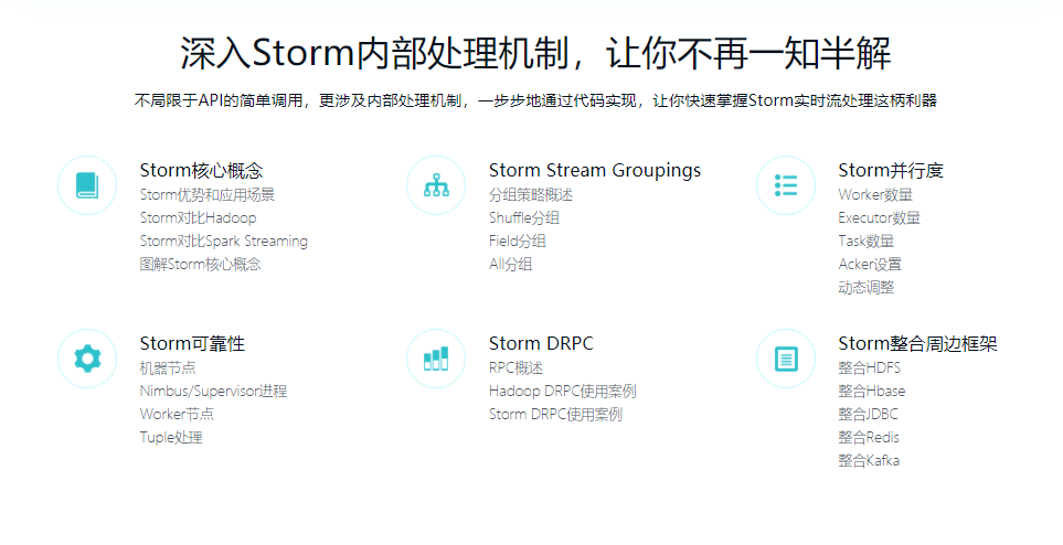 研发作业的同学。本课程将手把手带你从零循序渐进地解说Storm各方面的技术点,让你轻松胜任实践大数