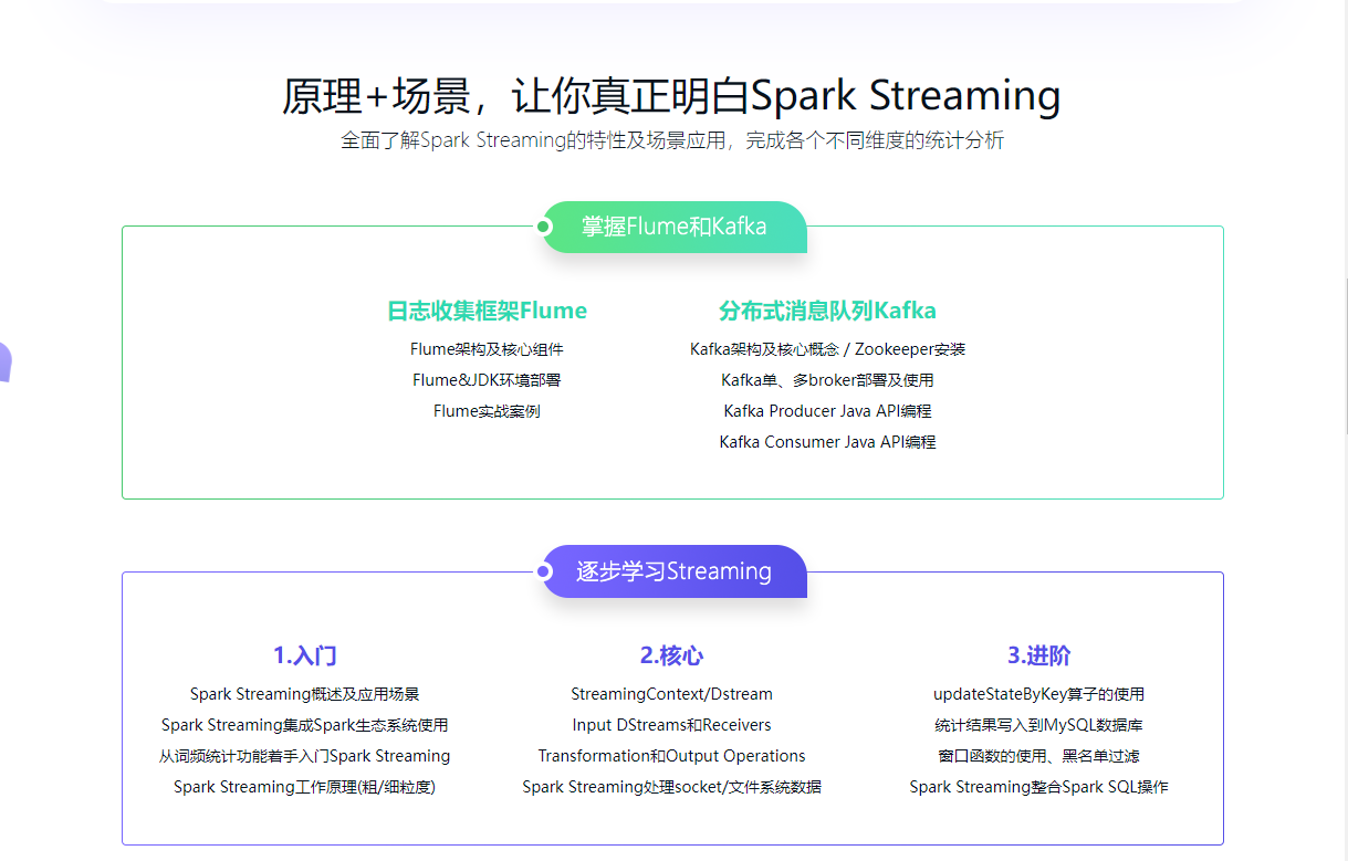 本章节将讲解Spark Streaming是什么,了解Spark Streaming的应用场景及发展史,并从词频统计案例入手带大家了解Spark Streaming的工作原理